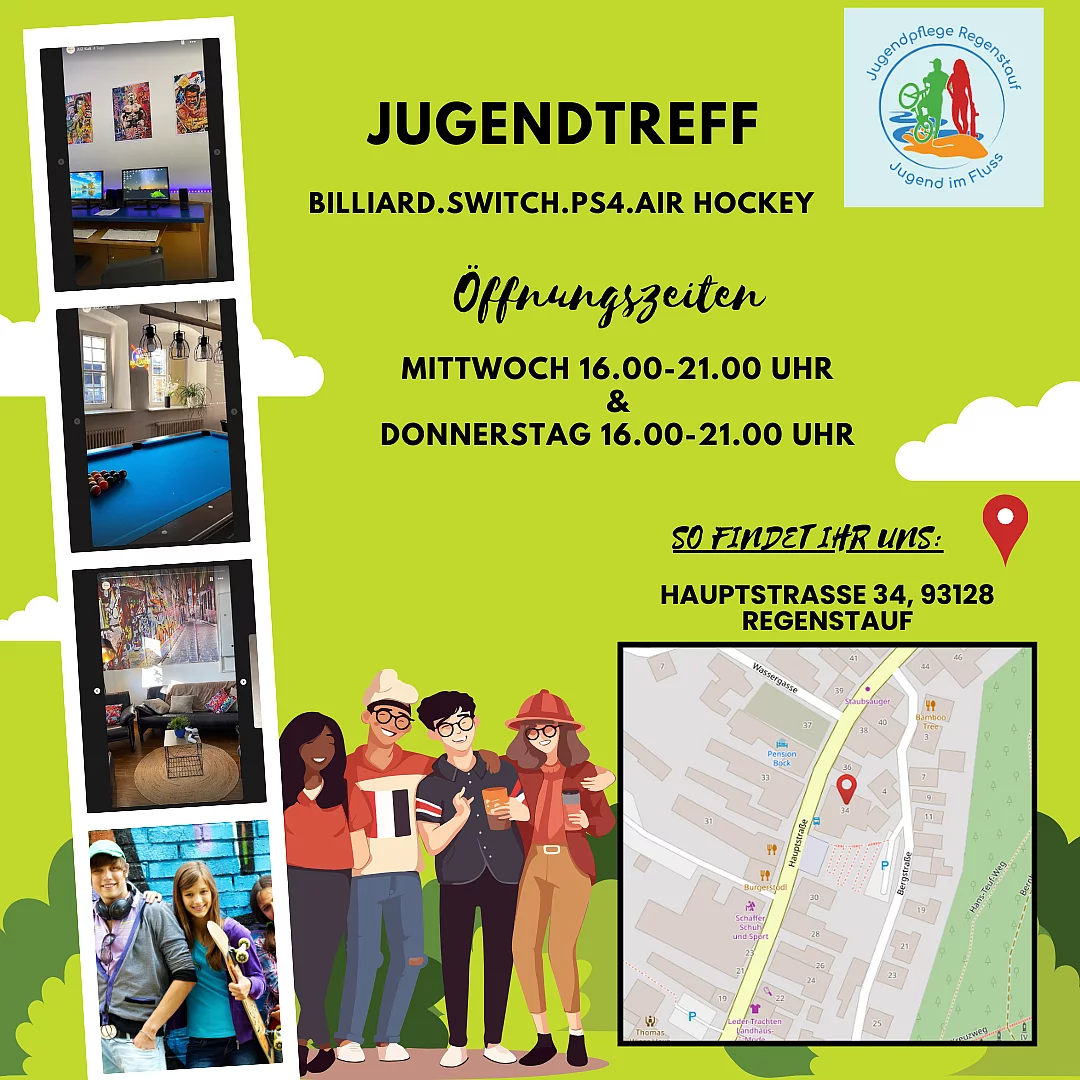 Der Jugendtreff Regenstauf bietet Raum für Begegnung, Freizeit und gemeinsame Aktivitäten für Kinder und Jugendliche.