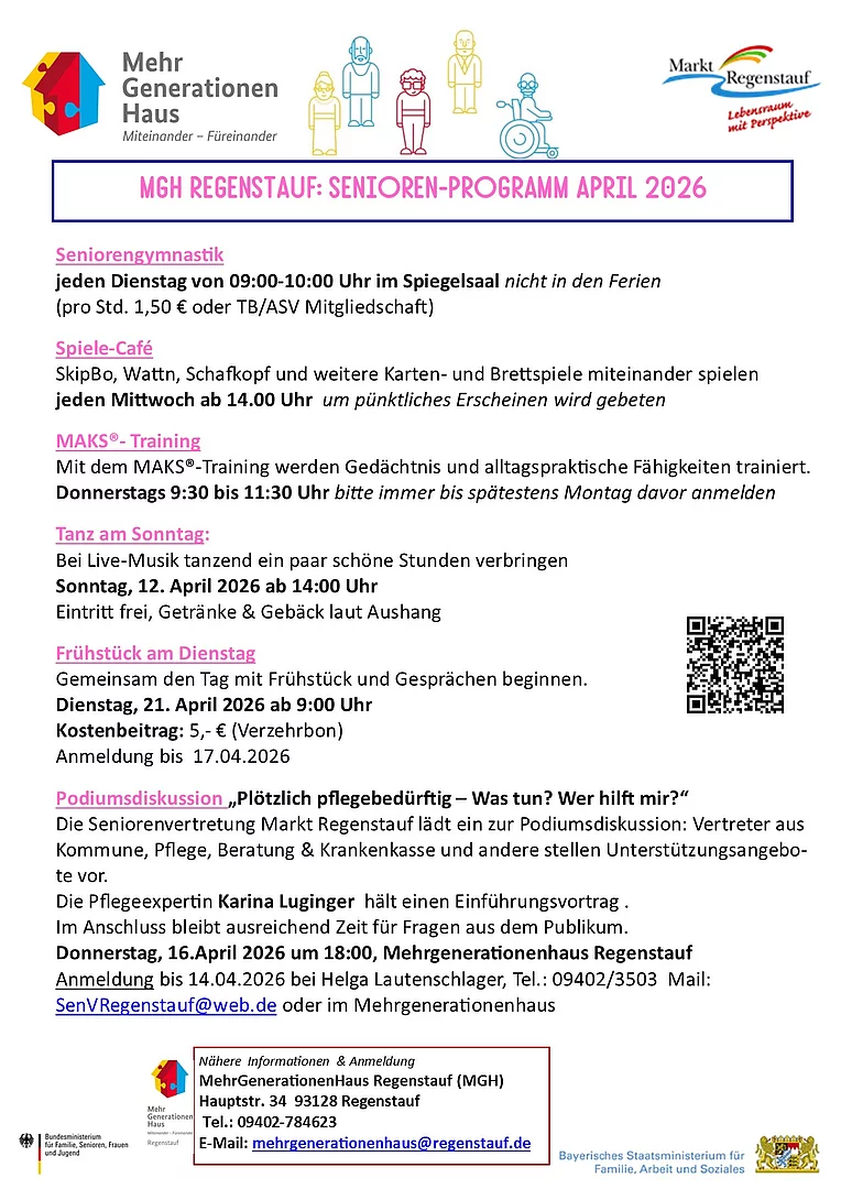 Mehrgenerationenhaus & Seniorenvertretung Regenstauf Angebote für Senioren - 1. Quartal 2026